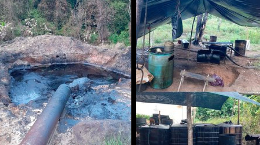 En el lugar fueron halladas tres piscinas para el almacenamiento del crudo hurtado de cuatro metros de largo por cuatro metros de ancho, cuatro marcianos (destiladores hechizos).