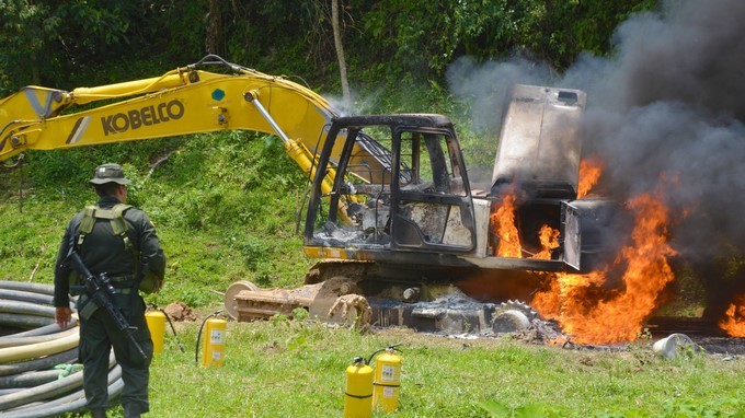 Lograron la destrucción de algunos elementos utilizados en la explotación ilícita de yacimientos mineros, entre ellos, seis dragas y una retroexcavadora, con una afectación económica de más de mil millones de pesos.