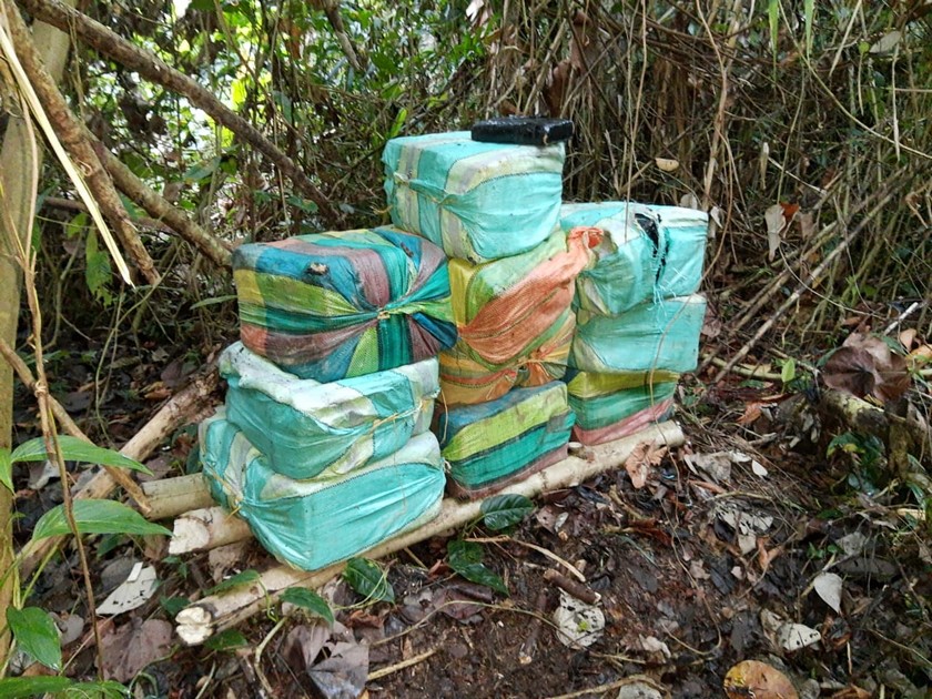Según las autoridades, labores entre hombres de la Armada y el Ejército llegaron hasta el sector conocido como Punta Bonita en el río Cajambre, en zona rural de Buenaventura, donde en medio de una zona de mangle se encontraba el alijo oculto en 10 bultos.