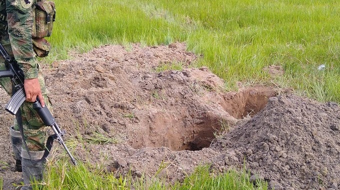 En otra operación desarrollada en este lugar, se destruyó controladamente una mina antipersonal y un artefacto explosivo improvisado tipo abanico los cuales quedaron al descubierto justo cuando dos hombres los instalaban en la vereda La Pica, área que pretendían preparar con más de estas armas de guerra no convencionales poniendo en riesgo a cientos de campesinos que transitan permanentemente por la zona.