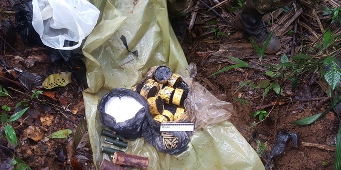 En el lugar fueron encontrados 28 artefactos explosivos, tipo mina antipersonal envasada en tubos de pvc, tres cargas huecas, un kilo de úrea, dos barras de pentolita y 190 cartuchos calibre 5.56 milímetros.