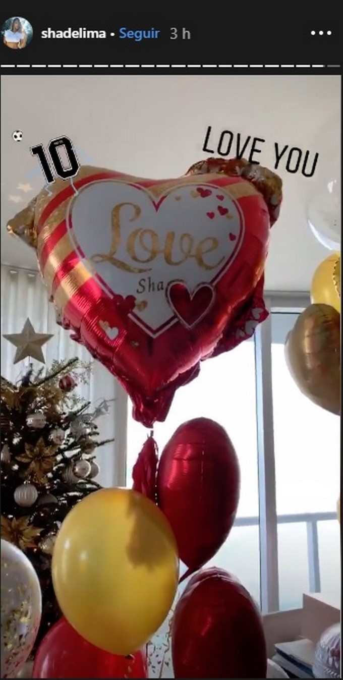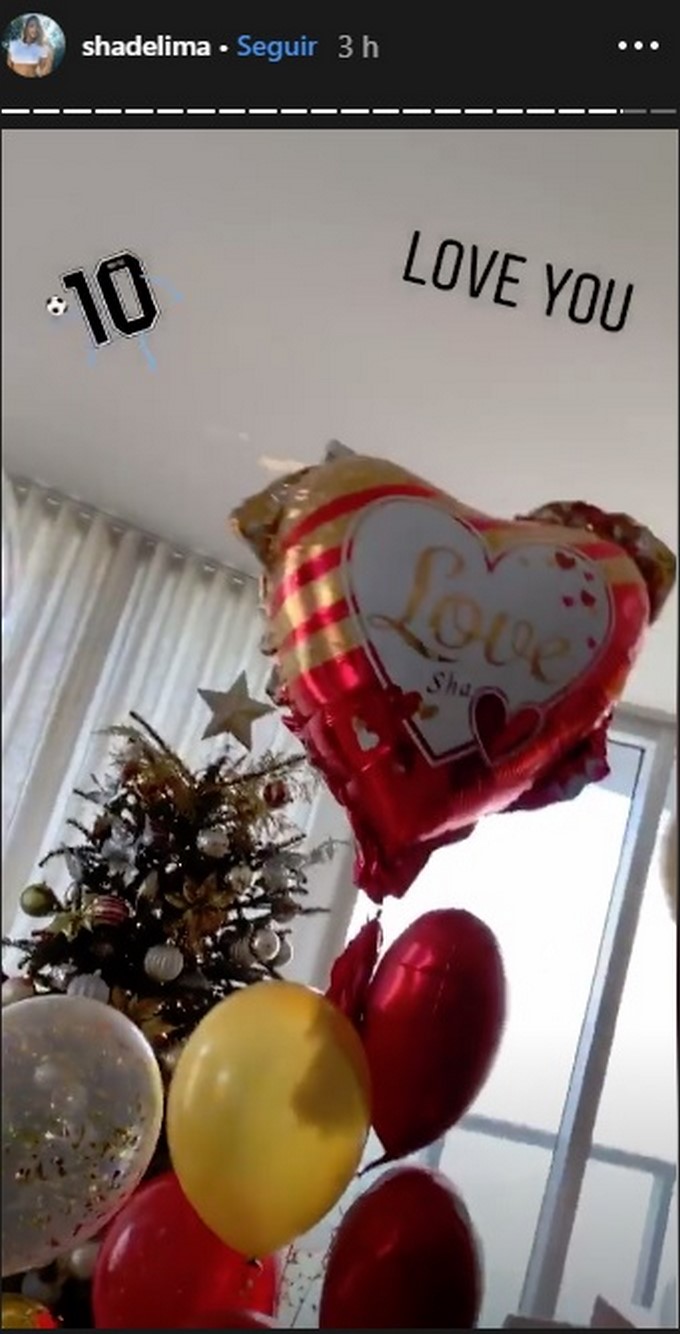 A través de las historias de Instagram Shannon mostró en un pequeño video el regalo que, al parecer, se lo habría dado James Rodríguez, donde se observa un cuarto lleno de bombas rojas en forma de corazones, bombadas doradas y blancas en compañía de este escrito “Love Sha”.