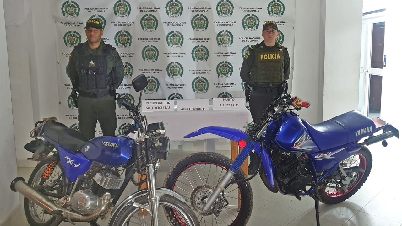 En zona urbana del municipio de El Santuario, fueron aprehendidos dos menores de 17 años, los cuales se movilizaban en las motocicletas de marca Suzuki Línea AX- 100, y marca Yamaha línea DT-125.