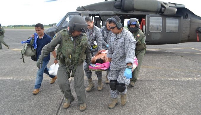 Luego del requerimiento del Centro Nacional de Recuperación de Personal, de la Fuerza Aérea, una tripulación a bordo del helicóptero UH-60 “Ángel” y con personal médico del Comando Aéreo de Combate No. 2, CACOM 2, ubicado en Apiay, Meta, reaccionó y despegó hacia la zona.