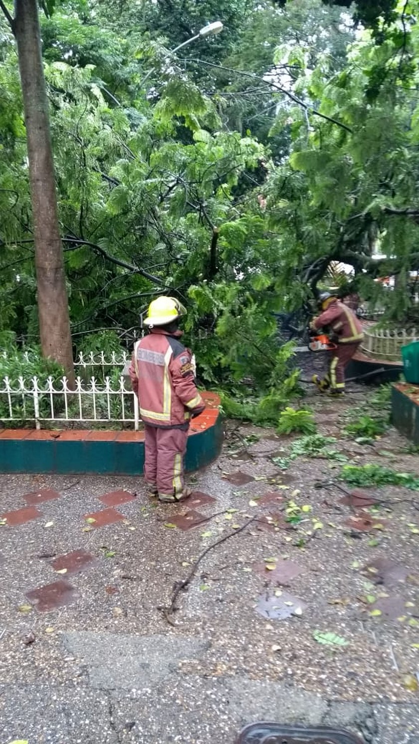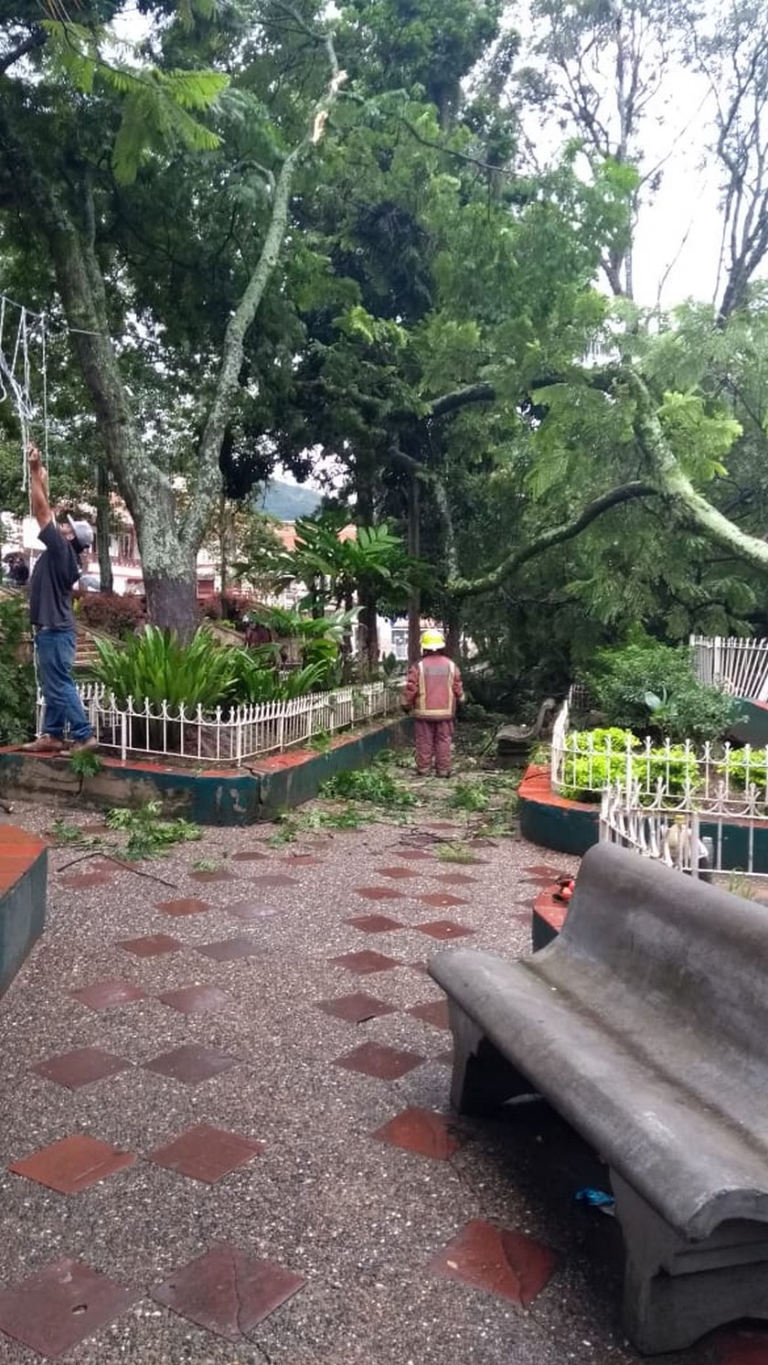 Versiones de habitantes del municipio anunciaron que la caída del árbol solo ocasionó daños mobiliario urbanos.