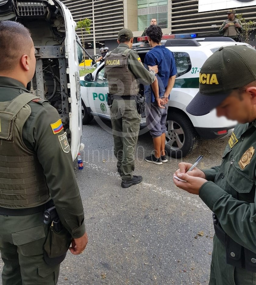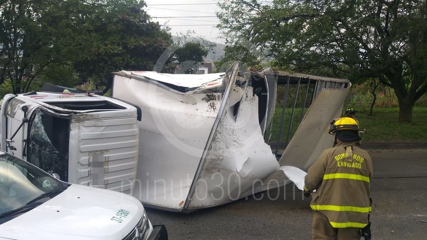 Inmediatamente después de que un camión se volcó en la Avenida Regional a la altura de Envigado, la Policía se hizo presente y arrestó al sujeto que iba al volante, aparentemente este se habría robado el vehículo minutos antes.