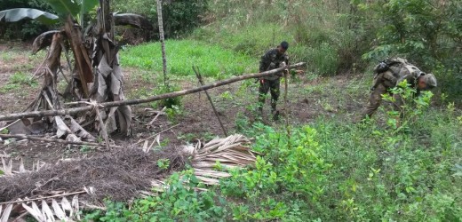 Allí fue destruido un laboratorio artesanal, donde hallaron 1.320 gramos de base de coca y 5 canecas con capacidad para 55 galones vacías.