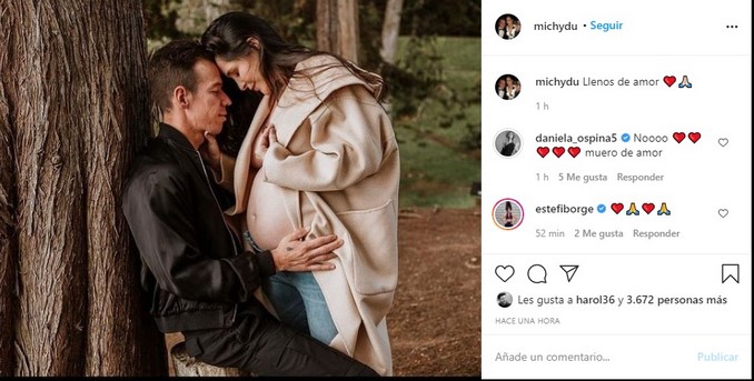 El ciclista colombiano Rigoberto Urán mostró con orgullo que se le creció la familia, con una fotografía en la que sale tocándole la barriga a su esposa, Michelle Durango, quien ya tiene alrededor de ocho meses de embarazo.