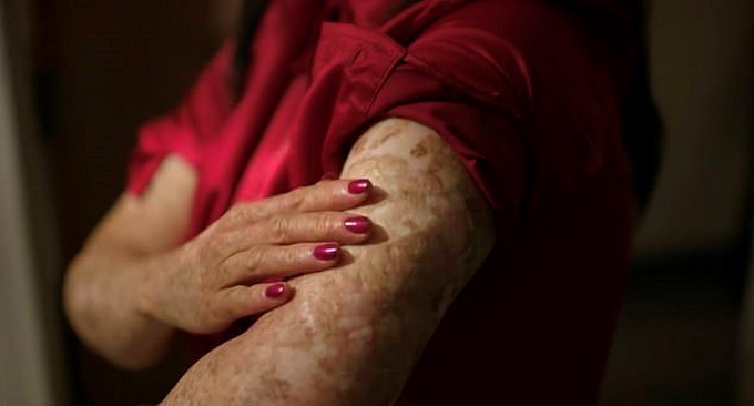 La mujer de 54 años debe echarse bloqueador solar cada dos horas incluso si está dentro de su casa, la cual tiene las ventanas pintadas y las cortinas siempre están abajo.