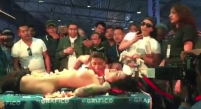 La modelo ha participado de un evento patrocinado por una revista de espectáculos de México, en el que a la mujer le ponen galletas en toooooodo su cuerpo, sin escatimar ningún rincón de piel de esa espectacular modelo.