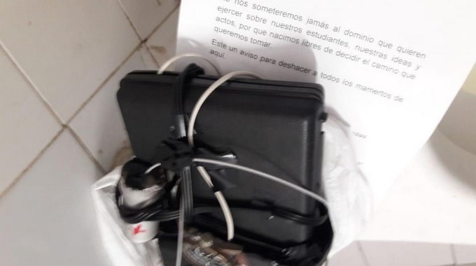 Un equipo antiexplosivos llegó a la universidad para descartar cualquier amenaza y se informó que se iniciarán las investigaciones correspondientes para determinar quién fue el responsable de instalar este artefacto acompañado por una amenaza escrita de supuestos grupos armados.