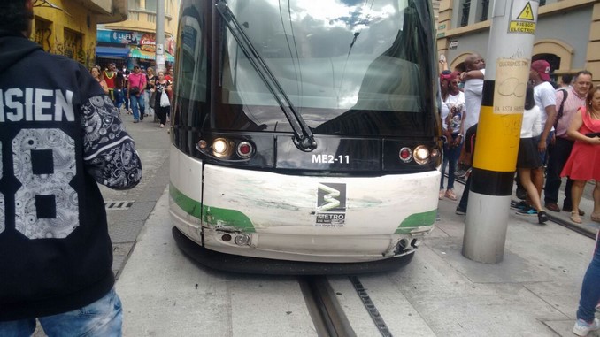 La fuerte colisión ocurrió en la calle 49 con carrera 43 (Girardot). El Tranvía se desplazaba desde el oriente hacia el centro de Medellín.
