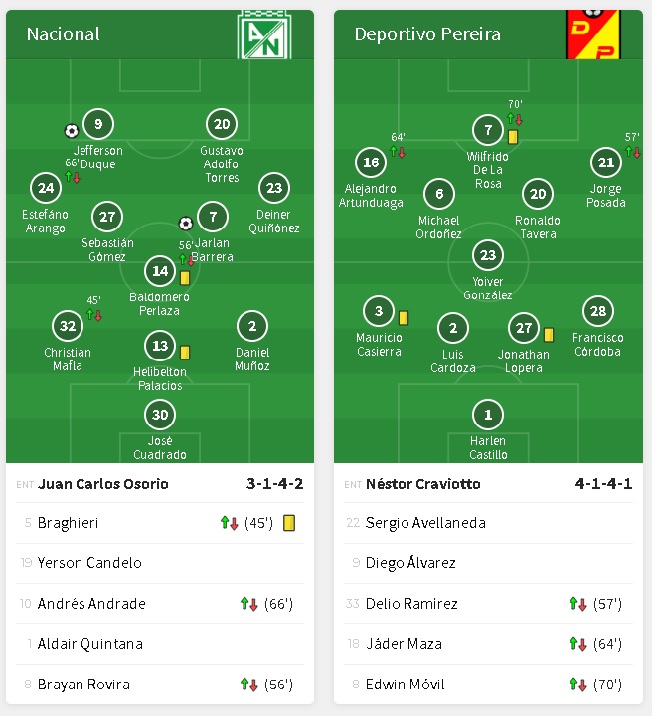 Fue un primer tiempo con altibajos, donde el Deportivo Pereira se vio más cómodo dentro del terreno de juego y un Nacional sin muchos vistos tal como los dejó ver en la pretemporada en Estados Unidos.