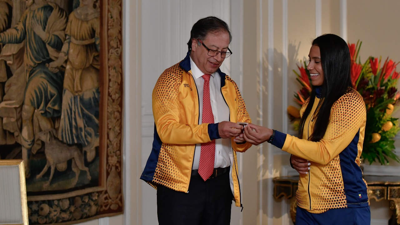 Para esta ceremonia Petro estuvo acompañado por la Ministra del Deporte, Astrid Bibiana Rodríguez Cortés, de quien destacó que es maestra de educación física.