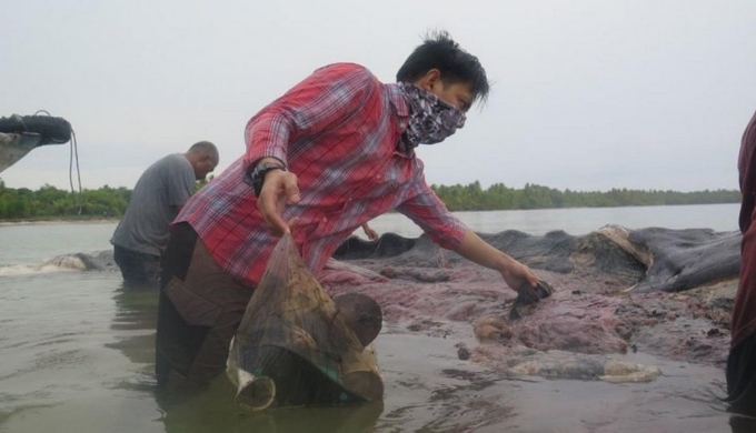 De acuerdo con Dwi Suprapti, coordinadora de la WWF para de conservación de especies marinas en Indonesia, fue imposible determinar con exactitud las causas de muerte del mamífero debido al avanzado estado de descomposición aunque calificó de horrible lo que se halló en el animal.
