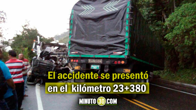 Minuto30.com- Un grave accidente entre dos camiones obligó al cierre de la Autopista Medellín – Bogotá, en sector conocido como Chagualá, vía El Santuario – Caño Alegre, kilómetro 23+380.