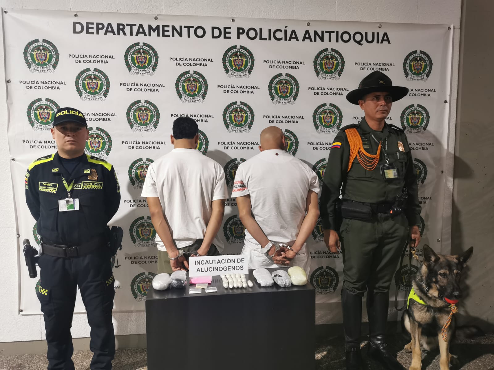 Asimismo, en el Aeropuerto José María Córdova, las autoridades lograron la captura de dos hombres, de 19 y 40 años, que pretendían transportar múltiples dosis de estupefacientes.