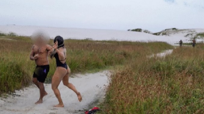Joyce Vieira, una luchadora profesional de 27 años, le dio una gran paliza a un sujeto que intentó masturbarse cuando ella se encontraba junto a una amiga tomándose unas fotos en una playa de Río de Janeiro, Brasil.