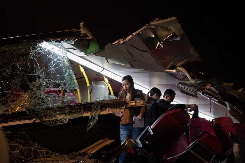 El suceso tuvo lugar pasadas las 16.00 hora local (08.00 GMT) y en él se vio envuelto un autobús de línea de dos pisos que recorría un tramo de la autopista Fanling, cerca de Kwu Tung.