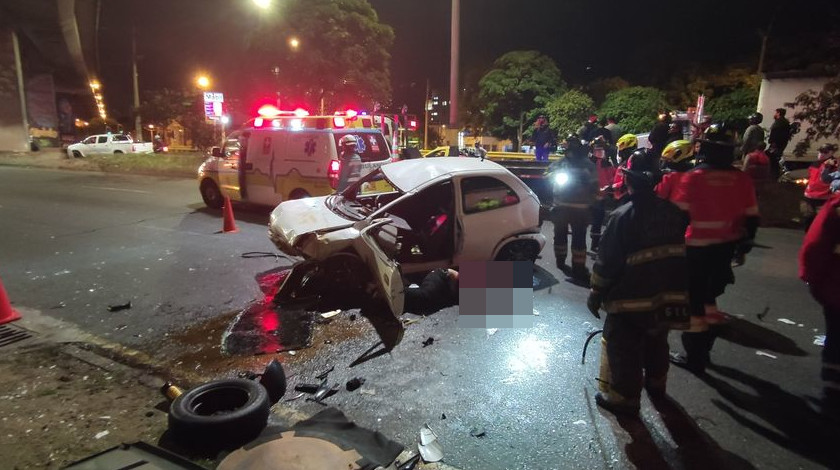 Los hechos se registraron poco antes de la 1 de la madrugada, a la altura del puente Monumental del Medellín, cuando un vehículo particular impactó contra una de las columnas del viaducto del Metro.