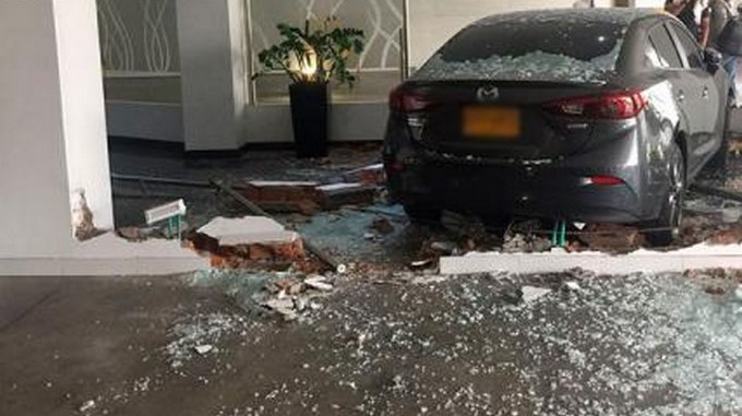 El impresionante hecho se presentó en el oriente de Cali cuando un vehículo se estrelló contra dos pequeños muros y un vidrio en la recepción de un motel, sin dejar ninguna persona herida.