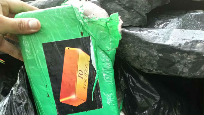 Se decomisaron 47 paquetes de 25 kg de clorhidrato de cocaína etiquetados bajo la marca Gold y con empaque de protección contra humedad y golpes.