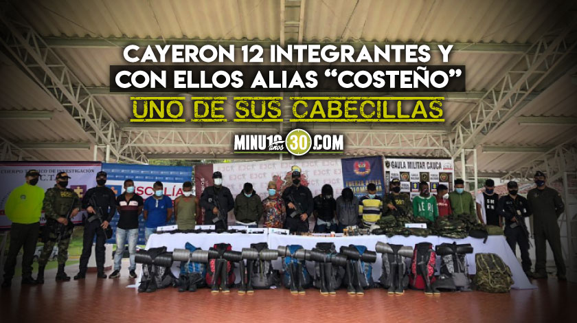 Según información preliminar, en total fueron capturados 12 de sus presuntos integrantes, dentro de los cuales se encuentra alias ‘Meneo o Costeño’, cabecilla de esta estructura. Al parecer, alias ‘Meneo o Costero’ será quien coordinará homicidios en Morales y Piendamó, Cauca.