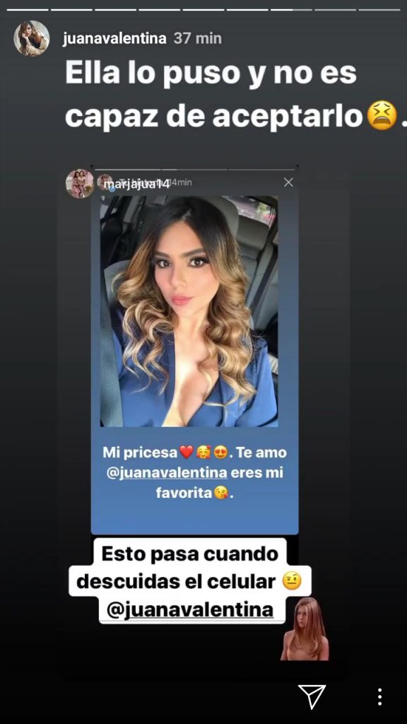 Juana es famosas por sus bromas y esta vez la víctima fue María del Pilar,. Sin permiso, la joven le cogió el celular a su mamá y publicó en la cuenta de Instagram de Rubio una imagen de ella con la siguiente frase: “Mi princesa. Te amo @juanavalentina eres mi favorita”.