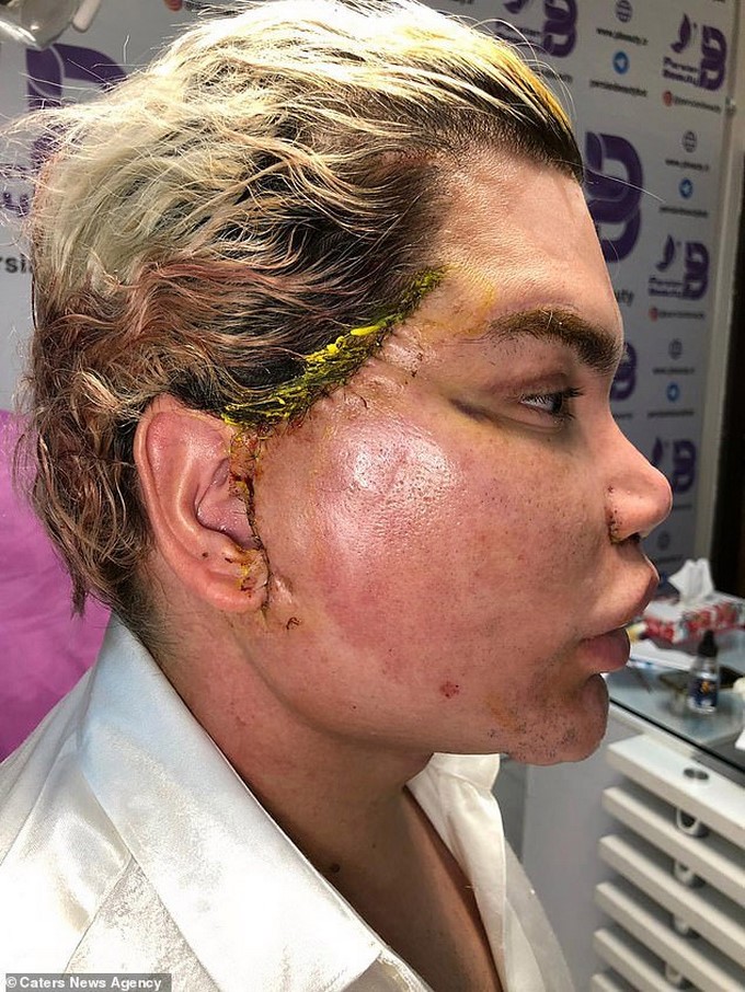 El hombre de 35 años compartió las fotos de su rostro vendado y cosido en Instagram.
