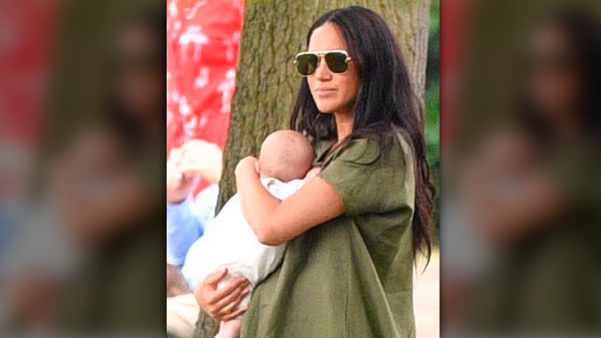 La duquesa de Sussex llegó a un partido de polo en Inglaterra con su pequeño de tan solo meses de nacido, Archie, robándose todas las miradas de los asistentes al encuentro. Luciendo un vestido Givenchy se paseó por todo el lugar con su bebé en brazos, a quien acaban de bautizar bajo la religión que profesa la familia real, dándole besos y mimos que quedaron registrados por los paparazzis.