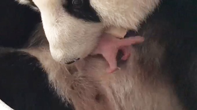Una captura de vídeo muestra a la panda Liang Liang con su recién nacido en el Zoo de Malasia, en Kuala Lumpur. EFE