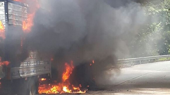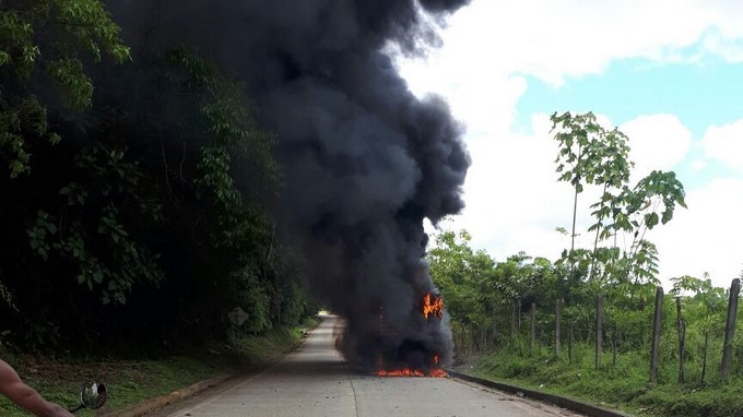 Minuto30.com-. Dos camiones que transportaban mercancía los consumió las llamas este sábado 7 de octubre en la vía Quibdó-Medellín, a la altura del corregimiento de Tutunendo.