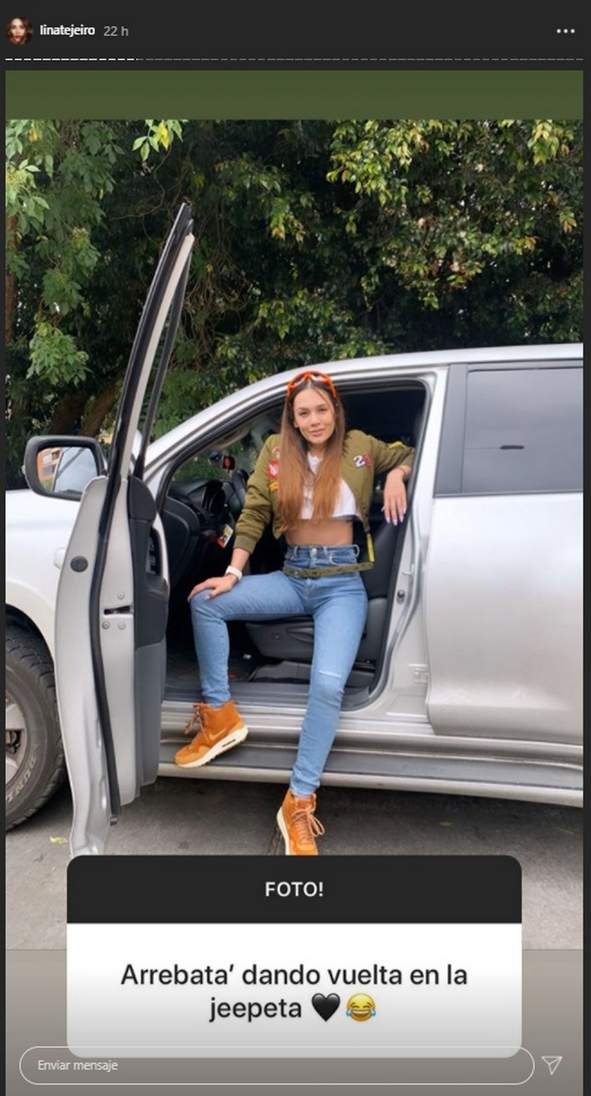A través de su cuenta de Instagram, la actriz Lina Tejeiro presumió su nueva casota mientras estaba recostada sobre su camioneta.