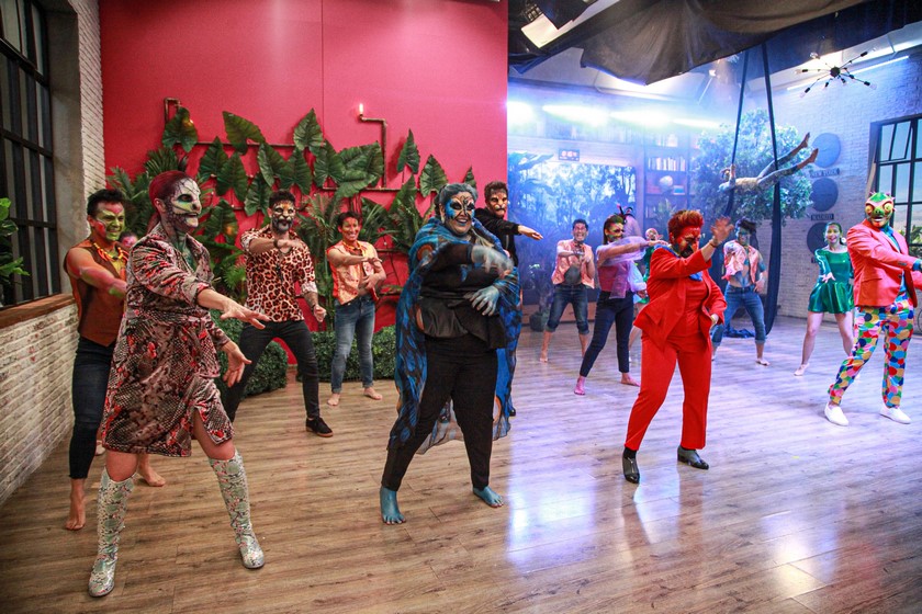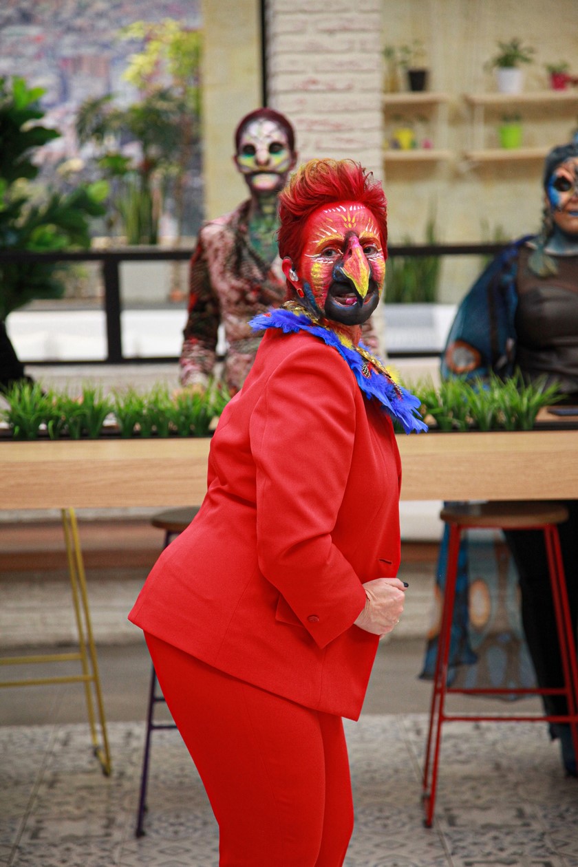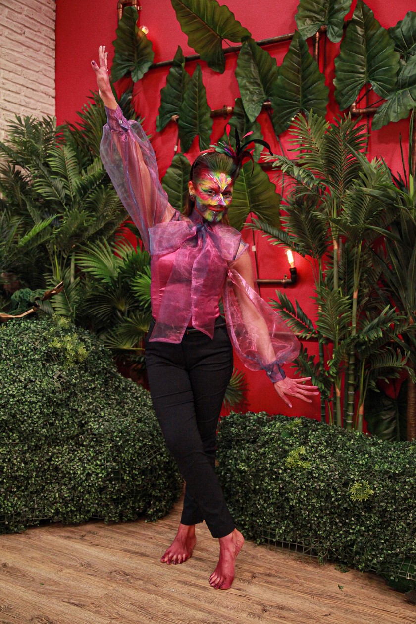 Iván Lalinde como un tigrillo, Yaneth Waldman como una guacamaya, Juanda Caribe como un camaleón, Ángela Cardozo como una anaconda, Juan Diego Vanegas como un jaguar, Marcela McCausland como una mariposa morpho, Silvia Corzo como un colibrí y Lucho Díaz y Juan Ricardo Lozano ‘Alerta’ como monos tití, todos mostraron un maquillaje magistral y le hicieron honor a esa fauna que como colombianos y americanos debemos preservar.