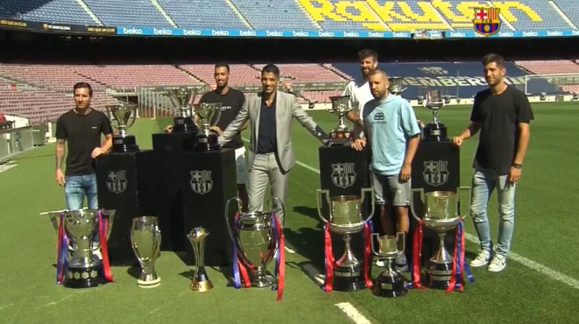 Suárez se marcha del conjunto azulgrana, tras seis temporadas, como tercer máximo goleador de la historia del club (198 tantos) y trece títulos en su palmarés: 1 Liga de Campeones, 1 Mundial de Clubes, 1 Supercopa de Europa, 4 Ligas, 4 Copas del Rey y 2 Supercopas de España. EFE