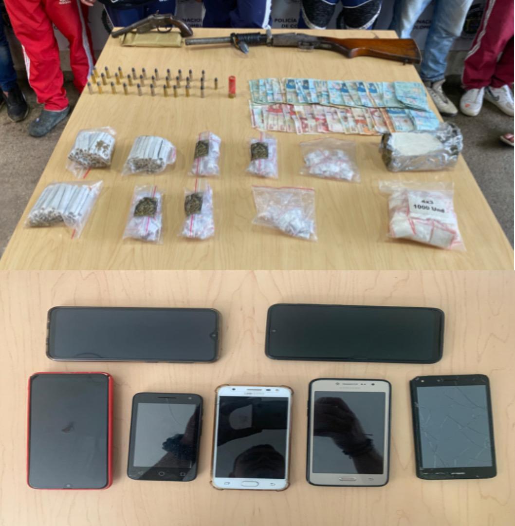 Además, se informó que para la ejecución de los delitos eran instrumentalizados varios menores de edad. La captura y aprehensión de los investigados fue coordinada por la Fiscalía y ejecutada por miembros del Gaula de la Policía el 19 de agosto en Amagá, donde fueron incautadas 2 armas de fuego defensa personal, 32 cartuchos de diferente calibre, 120 gramos de cocaína, 148 dosis de marihuana y $641.000 en efectivo.