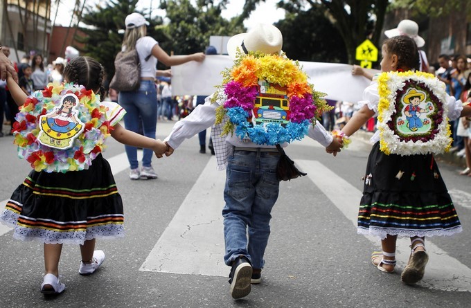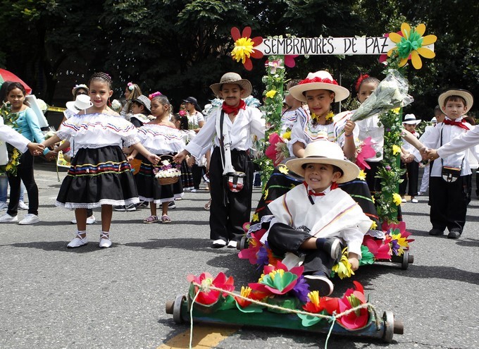 Unos 2.500 niños silleteros desfilaron hoy por las calles de Medellín para darle la bienvenida a la versión 61 de la Feria de las Flores y rendir tributo a sus tradiciones cargando pequeños y coloridos arreglos florales en su espalda.