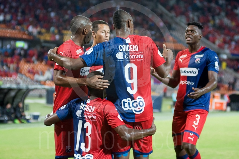Independiente Medellín celebra gol con Ricaurte y Caicedo