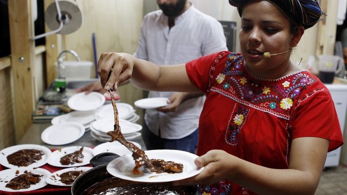 Un mole michoacano, que contiene 32 ingredientes y elaborado en un metate, fue uno de los platillos con los que descrestó la cocinera tradicional mexicana Cnidia Yunuén Velázquez, quien desveló secretos de su receta y reivindicó la gastronomía de su país, desdibujada por la cocina tex-mex de Estados Unidos.