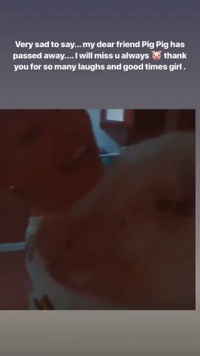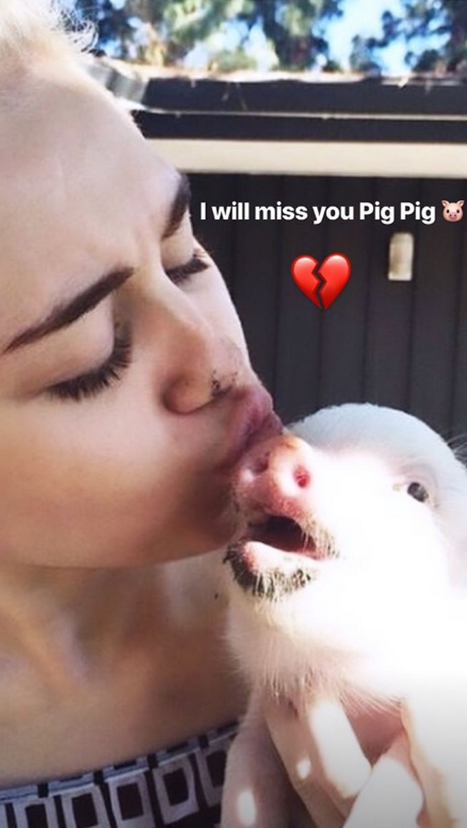 “Siempre te extrañaré. Gracias por tantas risas y tantos buenos momentos”, escribió Miley en sus historias de Isntagram mostrando cómo la mini pig la hacía reír. Además publicó una foto en la que está besando a la cerdita y le puso un emoji de corazón roto u otra imagen en la que aparece desnuda abrazando al pequeño aniamal.