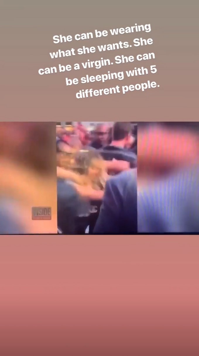 “Ella puede usar lo que quiera. Ella puede ser virgen. Ella puede dormir con cinco personas distintas. Ella puede estar con su esposo. Ella puede estar con su novia. Ella puede estar desnuda. Ella no puede ser tomada sin su consentimiento”, fueron las frases que se pudieron leer mientras se ve de fondo el momento de la agresión siendo debatido por las presentadoras del programa estadounidense ‘The Talk‘, entre las que se destacan Sharon Osbourne.