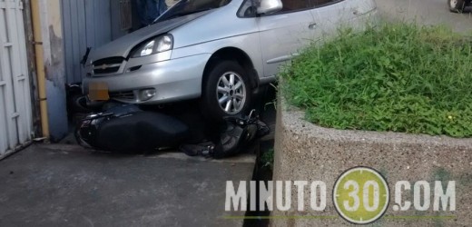 El accidente ocurrió en la calle 44 -San Juan- con la carrera 41, a dos cuadras de las Torres de Bomboná. Allí un carro terminó estrellado en una acera y sobre una moto. Testigos manifestaron a Minuto30.com que, al parecer, el conductor del carro le lanzó el vehículo encima al motociclista cuando este lo intentó atracar.