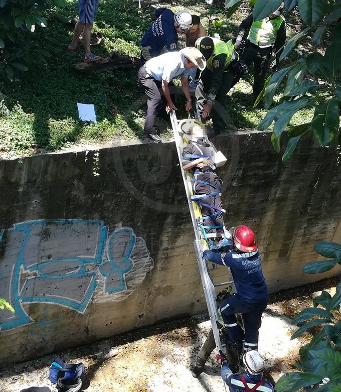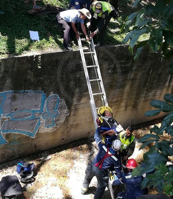 Los bomberos de Medellín acudieron al lugar del accidente, valoraron y atendieron a la mujer a quien trasladaron a un centro asistencial.