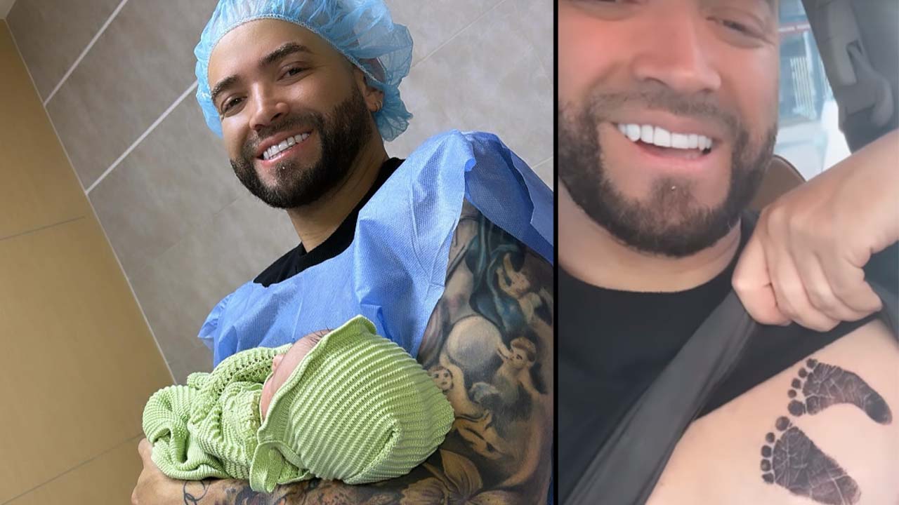 El cantante Nacho comparte la felicidad de nueva hija en redes sociales con el detalle de haberse tatuado las huellas en su pecho.
