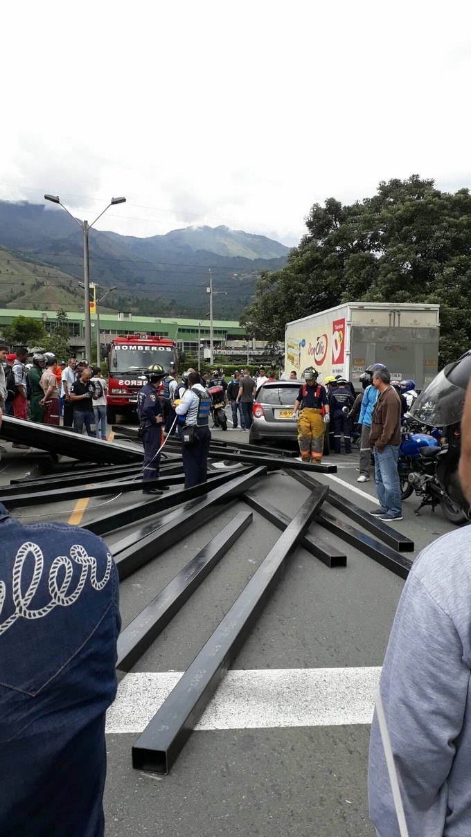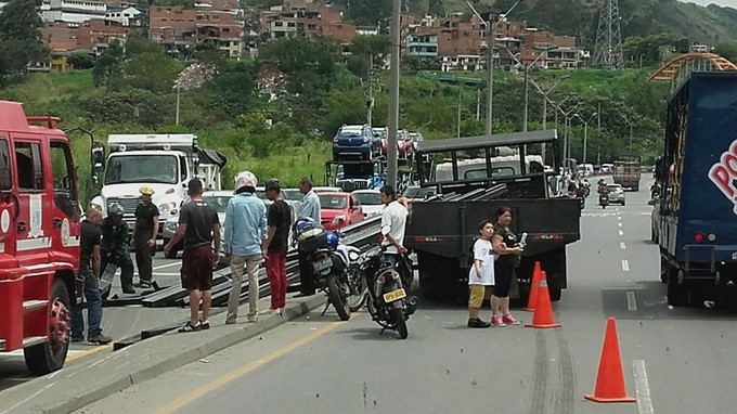 Un aparatoso accidente de tránsito se presentó en la glorieta de la estación Niquía de Bello. Según informaron los testigos, unas varillas, al parecer de acero, se desprendieron de la plataforma de un vehículo de carga. Las varillas cayeron sobre un automóvil, marca chevrolet y una motocicleta. Las personas que presenciaron el accidente informaron que […]