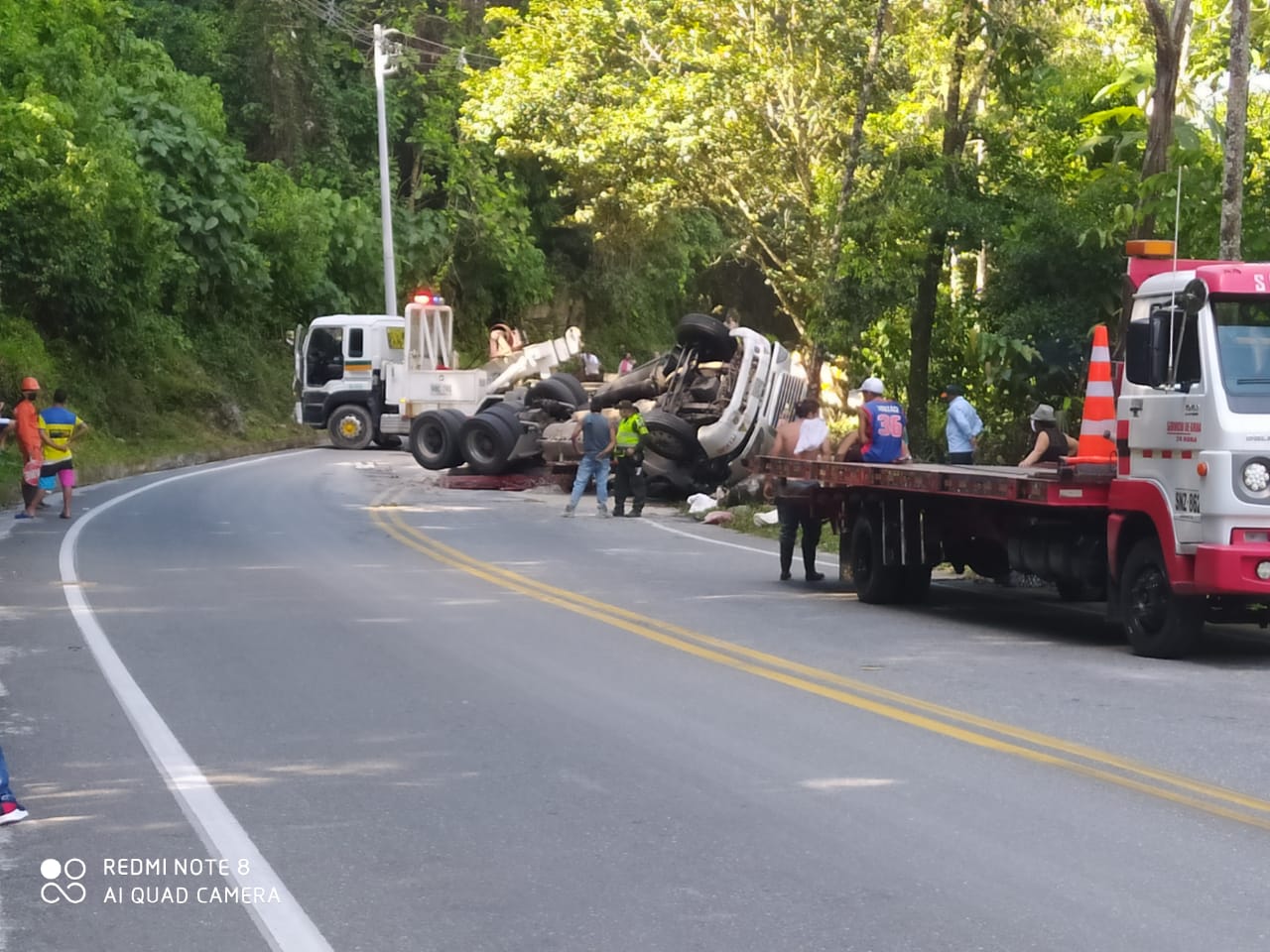 Sobre los hechos se conoce que un vehículo de carga de cemento terminó volcado por completo en la vía.
