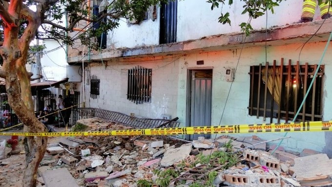 Fueron varias las viviendas que quedaron afectadas luego del desprendimiento de una fachada en una residencia en el barrio Doce de Octubre de Medellín.