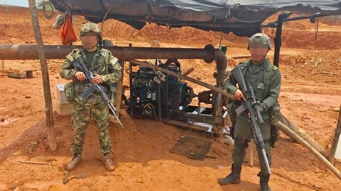Por su parte, en el departamento del Chocó, acabaron con una unidad de producción de explotación ilícita de yacimientos mineros en zona rural de El Carmen del Darién al norte del departamento. El hecho se produjo en la vereda La Urada – Jiguamiandó, allí se inutilizaron e incautaron una retroexcavadora, dos dragas, varios galones de combustible, herramienta para el mantenimiento de la maquinaria y equipos allí empleados, víveres y documentos que a esta hora son verificados por analistas de inteligencia militar. Estos elementos estarían avaluados en cerca de $1.500 millones y harían parte de la estructura logística y de rentas criminales del frente Manuel Hernández El Boche del Frente de Guerra Occidental del Eln, y se estableció que podría generar ganancias superiores a los $320 millones mensuales.