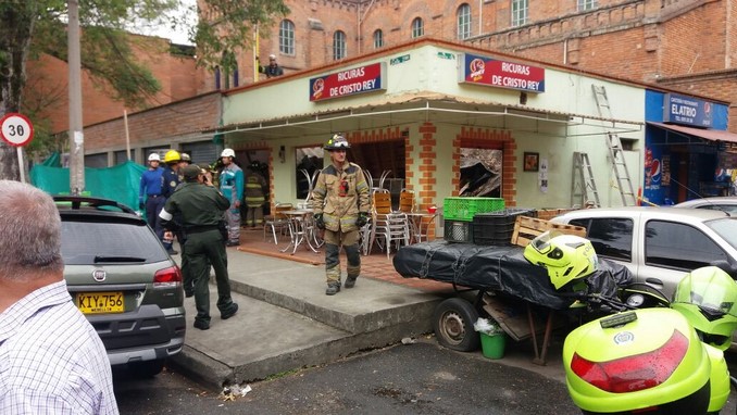 En barrio Cristo Rey, Unidades #BomberosMedellín atendieron incidente en que se registró colapso de techo en local comercial, 2 lesionados leves, caso controlado, equipo técnico evalúa estructura. pic.twitter.com/jGxVDAyxYp