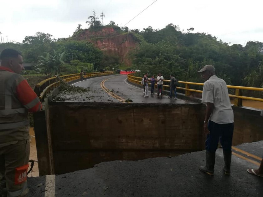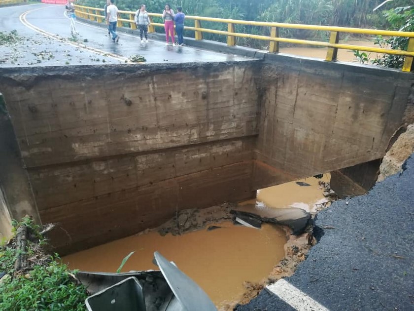 El hecho que ocurrió sobre las 2:00 a.m. fue provocado, según las autoridades, por las lluvias que se han registrado en San Roque en las últimas horas, que generaron la creciente creando un socavón en uno de los lados del puente haciéndolo colapsar en ambas calzadas.